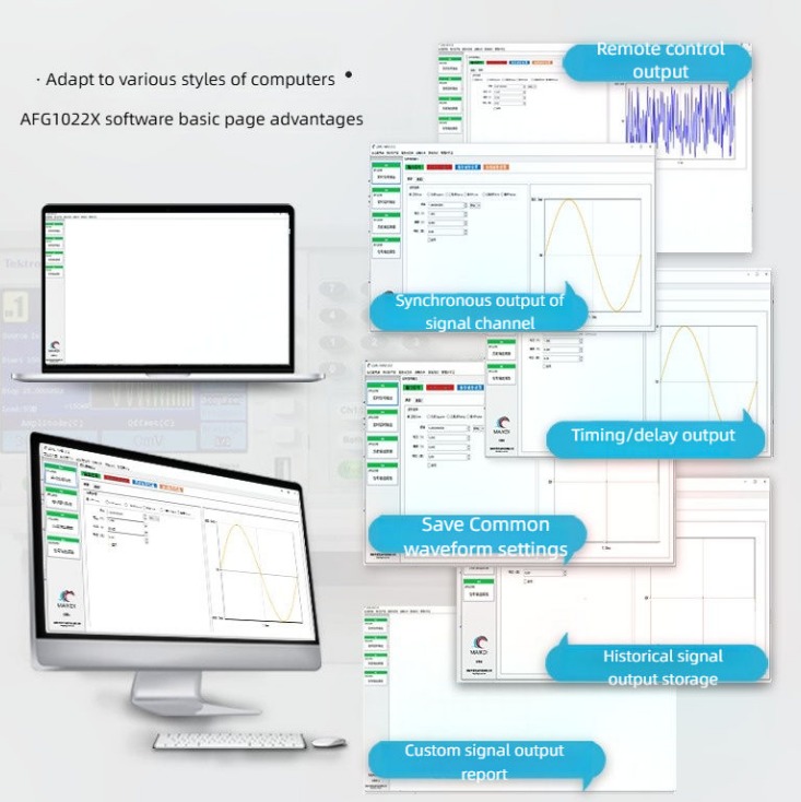 - Continu, sweeping, burst en modulatie modi (AM, FM, PM, ASK, FSK, PSK, PWM) dekken de meeste vereisten voor studenten en andere gebruikers om de experimenten / test werk gedaan te krijgen